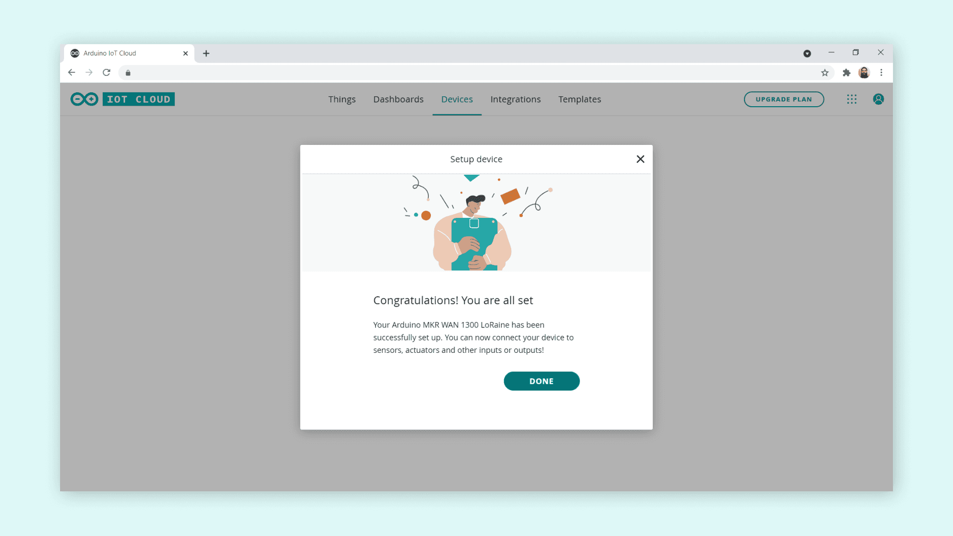 • View data from the device in the Arduino Cloud.