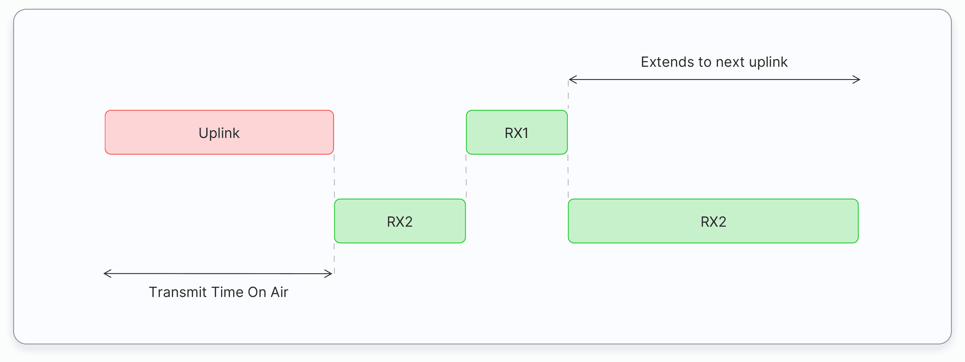 Class A devices implement a bi-directional communication profile where two short downlinks follow the end-device uplink transmission receive windows, usually referred to as RX1 and RX2. If the server does not respond in either RX1 or RX2 windows, the next opportunity will be after the next uplink transmission. Class A devices are often battery-powered and spend most of the time in sleep mode; therefore, they have the lowest energy consumption, keep long intervals between uplinks, and have high downlink latency.
