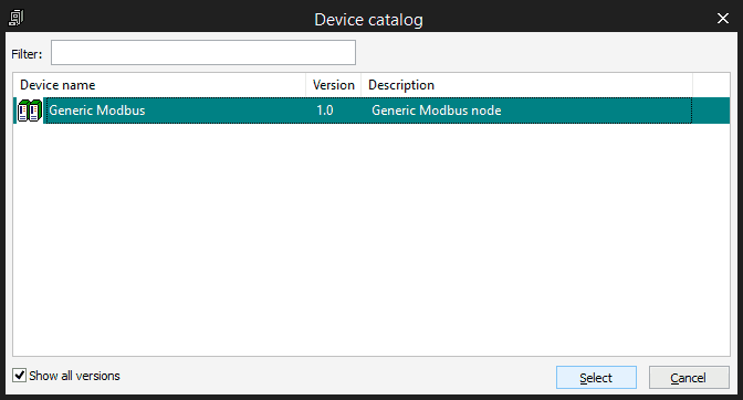 Then you can attach some functions to the Generic Modbus item, they will appear also in the Catalog Tile Window, you need to select first the Generic Modbus_01