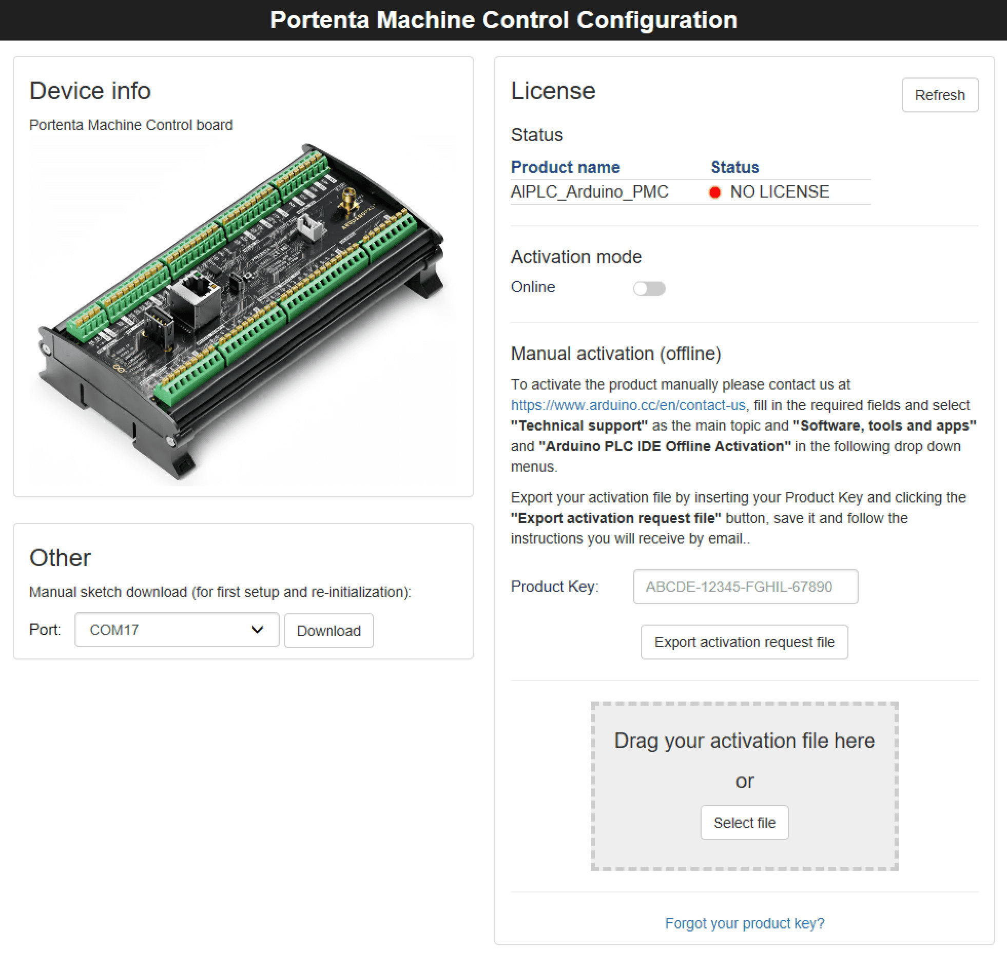• If you have a Portenta Machine Control, you will need a unique PLC IDE License key for your device. Get your license key here.