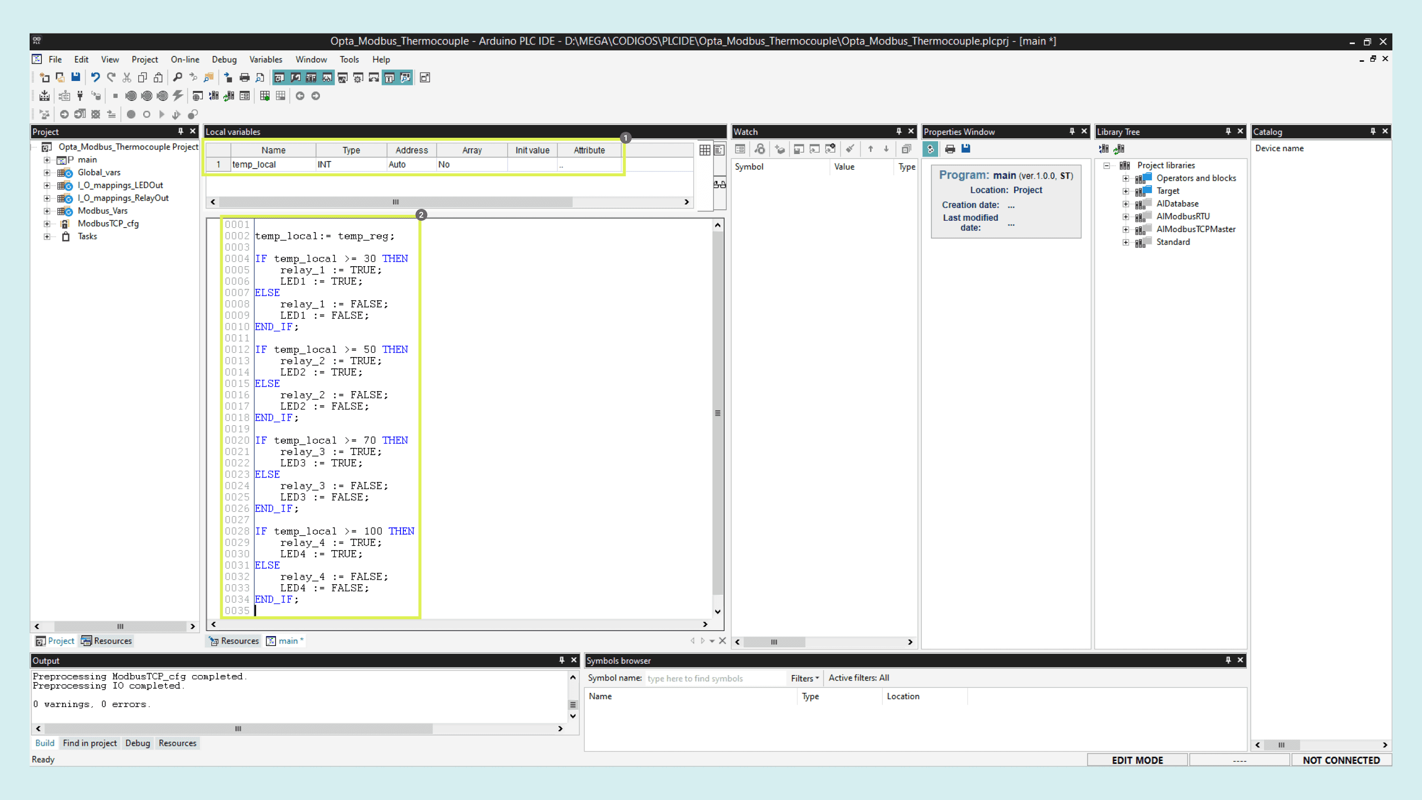 With the Opta™ successfully connected to the PLC IDE, it is time to configure the Modbus TCP communication.